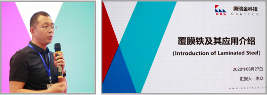 奥瑞金科技股份有限公司上虞分公司副总经理李众的主题是《覆膜铁及其应用介绍》,可以说是第一次从实战角度系统介绍覆膜铁、覆膜铁应用、内容详实、应用全面,对覆膜铁优势、局限、目前的主要问题逐一进行了探讨,提出了用户注意事项。