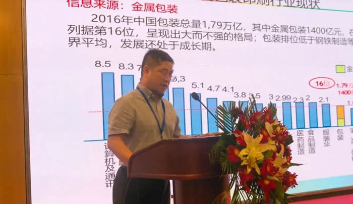 中粮包装技术中心副总经理朱争礼主讲《金属包装印刷的发展现状与趋势》,从全球化视角,就金属包装的国际比较、金属印刷技术发展趋势等分享观点。