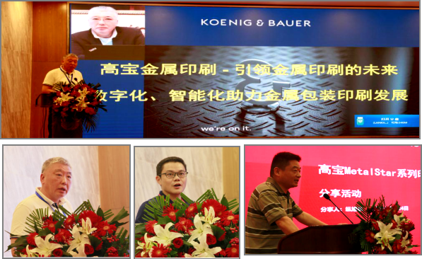 科尼希鲍尔印刷机械(上海)有限公司金属印刷中国区销售总经理廖镭、金属印刷中国区技术服务中心高级工程师纵旭东和杜宣,以《高宝印刷机引领世界金属印刷的未来、数字化、智能化助力中国包装印刷》为主题,介绍了高宝印铁短单生产的最新发展——1天50个订单的秘密,以及高宝印铁全流程的色彩管理与油墨预制、色彩闭环扫描系统、印前与印刷数据连接与相应等提出高宝应用方案,以及高宝印铁机的维护、保养和注意事项。
