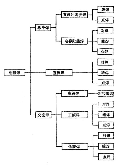 根据所使用的焊接电流波形特征、接头形式和工艺恃点,可将电阻焊作如下分类,见图3-1。
