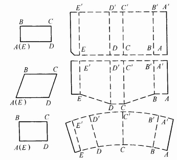 见图4-3-35,图中几种盒体均满足上述先决条件,可进行自动锁底式设计。