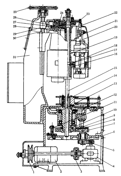 23、24、26、27、28—齿轮 25—手轮 29—螺母 30—螺杆 31—立柱