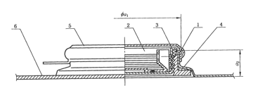 1-法兰;2-桶塞;3-垫圈;4-衬圈;5-封盖;6-桶顶