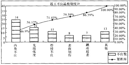 柏拉图也叫排列图,是根据收集的数据,按不同区分标准有系统地加以项目别(层别)分类,计算出各项目别所产生的数据及所占的比例,再依照大小顺序排列,再加上累积比率的图形。其形式是用双直角坐标图,左边纵坐标表示频数(如件数/金额等),右边纵坐标表示频率(如百分比表示)。柱图表示各因素的数量(频数),折线表示累积频率,横坐标表示影响质量的各项因素,按影响程度的大小(即出现频数多少)从左向右排列。通过对排列图的观察分析可抓住影响的主要因素,寻求占最大比率的项目,明确关键的少数。