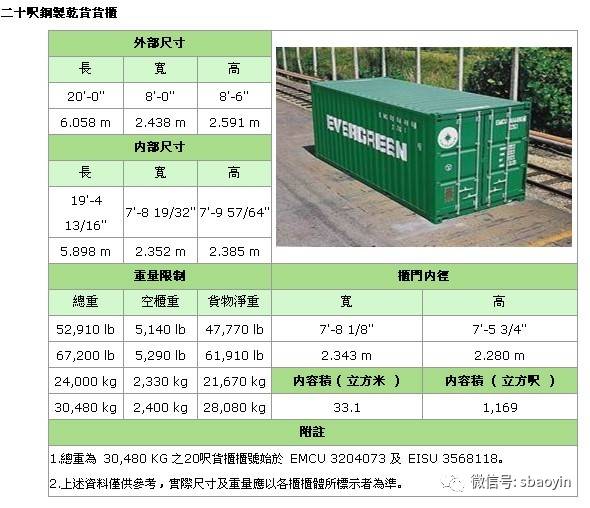 2、此文主要为海运集装箱尺寸,铁路、空运、陆路货车尺寸与此有所不同。 |